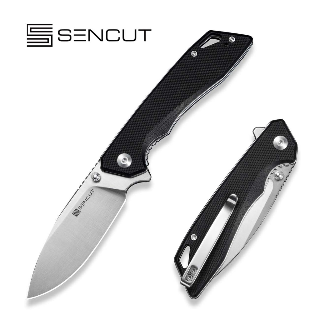 SENCUT Stratex Flipper & Thumb Stud Knife Black G10 Handle (3.17" Satin Finished 9Cr18MoV Blade) S25055-1