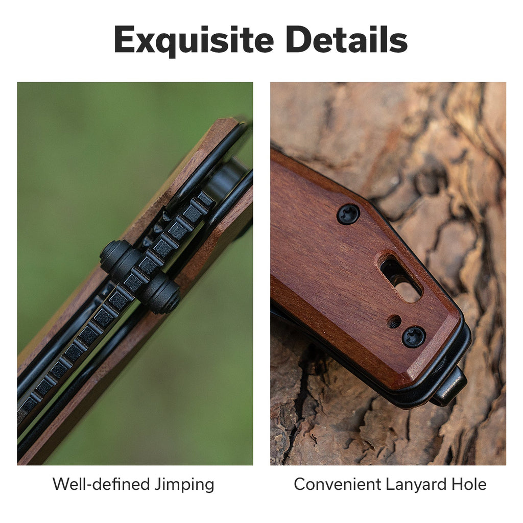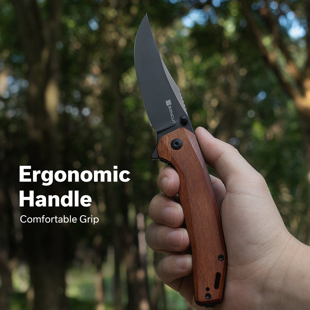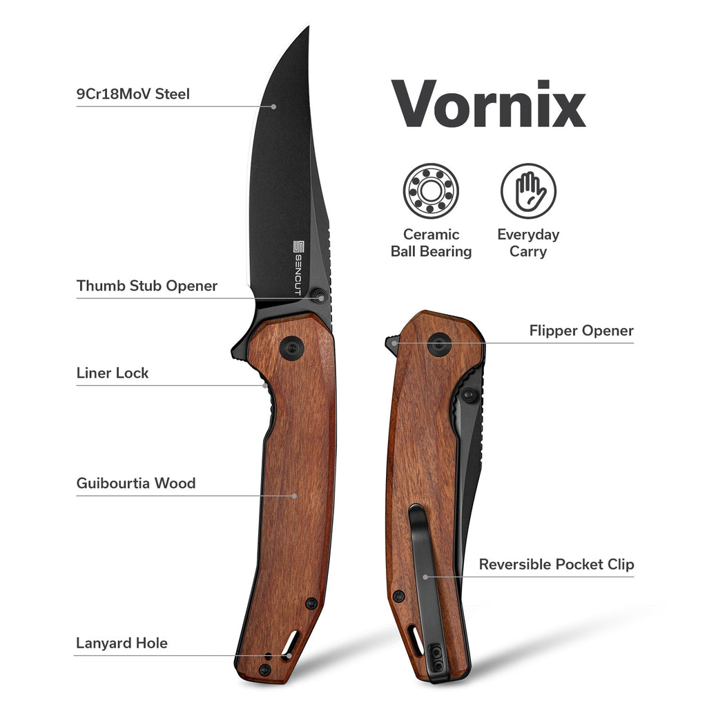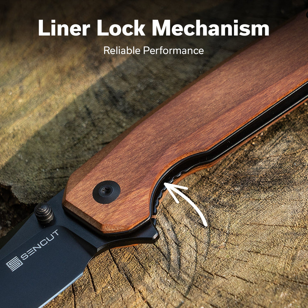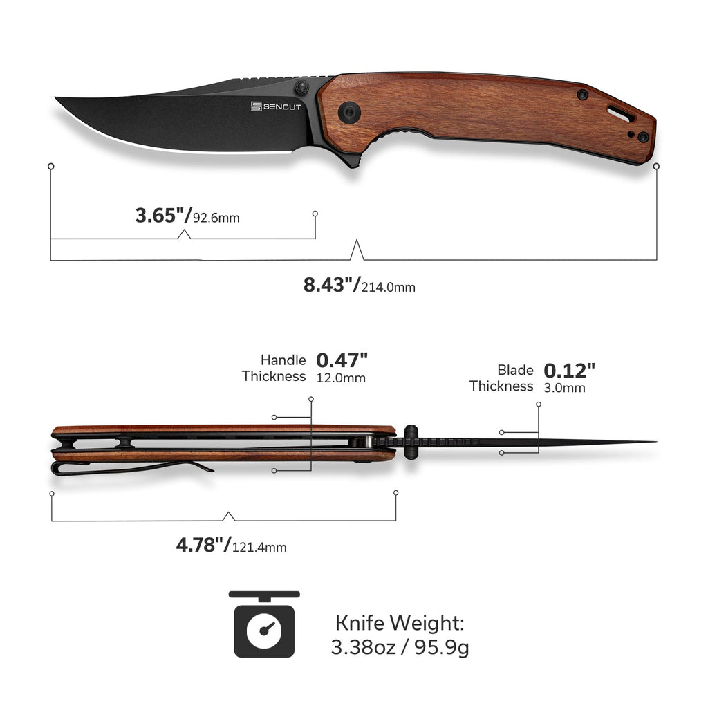 SENCUT Vornix Flipper Knife Guibourtia Wood Handle (3.65" Black 9Cr18MoV Blade) S25038-3