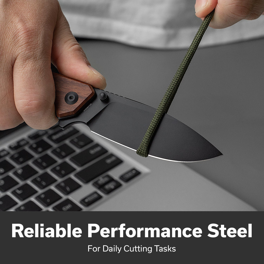 SENCUT Stratex Flipper & Thumb Stud Knife Guibourtia Wood Handle (3.17" Black 9Cr18MoV Blade) S25055-3