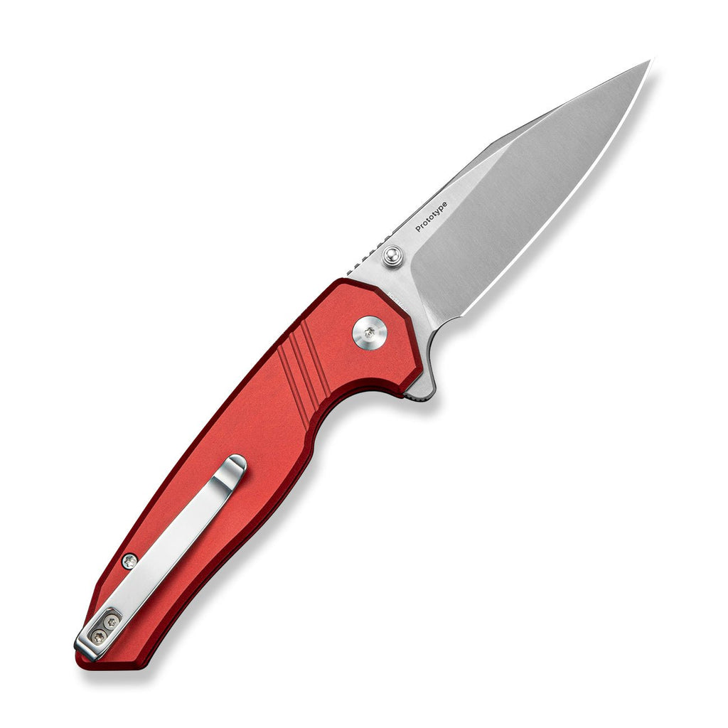 SENCUT Selkyris Flipper & Thumb Stud & Button Lock Knife Burgundy Aluminum Handle (3.36" Satin Finished 9Cr18MoV Blade) S25068 Sample1
